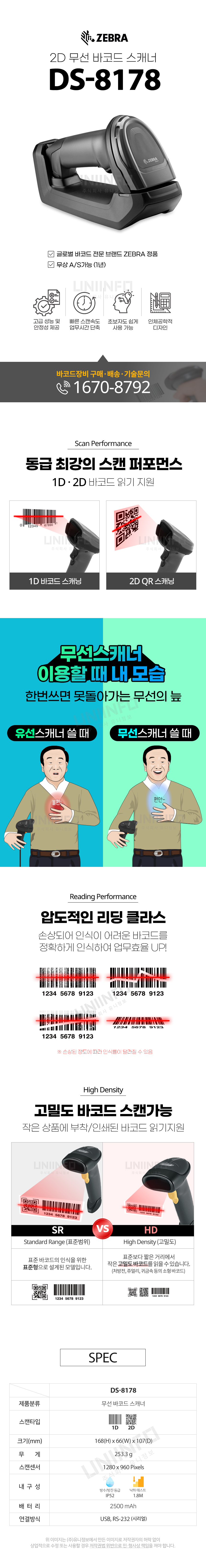 [ZEBRA] DS-8178 무선 바코드스캐너 USB타입