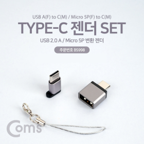 [Coms] 컴스 USB 3.1 OTG 젠더세트(USB 2.0A/5핀 to C타입) F/M BS991 (메탈실버/숏타입)