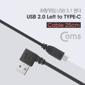 [Coms] 컴스 USB 3.1 C타입 / USB 2.0A 케이블 M/M NA988 (25cm, 블랙, 좌향꺾임)