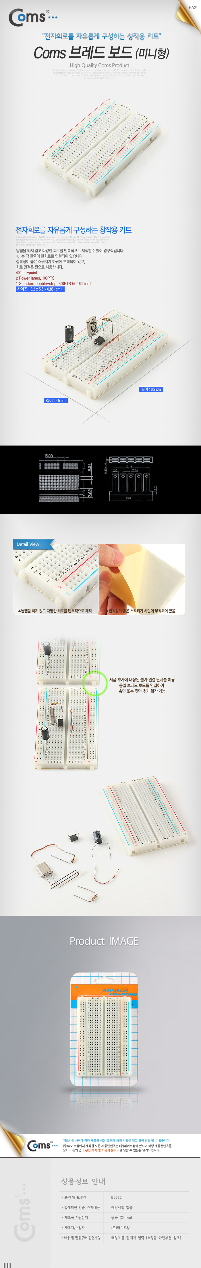 [Coms] 컴스 브레드보드(미니형) TP-026/BE552 (8.2x5.5x0.85cm)