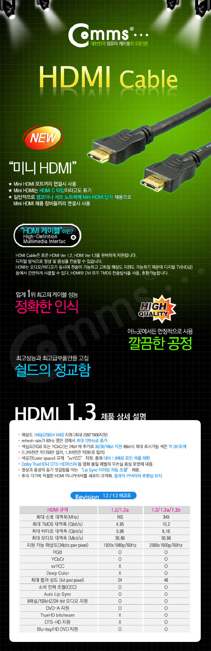 [Coms] 컴스 미니 HDMI 케이블 M/M C2256 (5m, C타입)