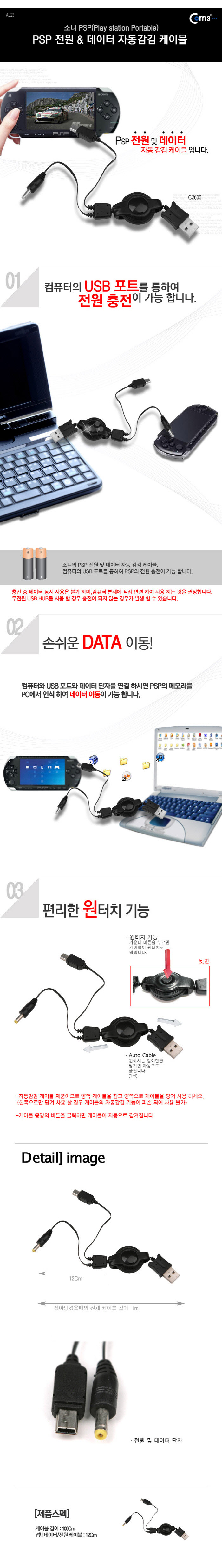 [Coms] 컴스 PSP 전원&데이터 자동감김 케이블 M/M C2600 (1m, Y형/원터치)