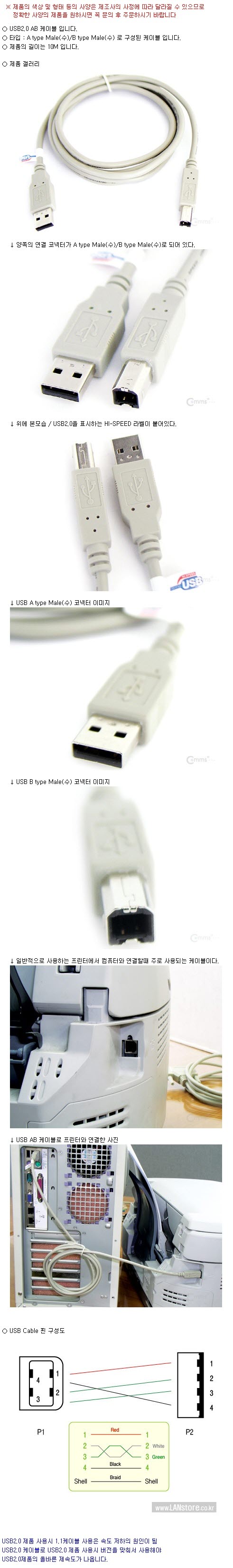 [Coms] 컴스 USB 2.0 A/B 케이블 M/M C3523 (10m)