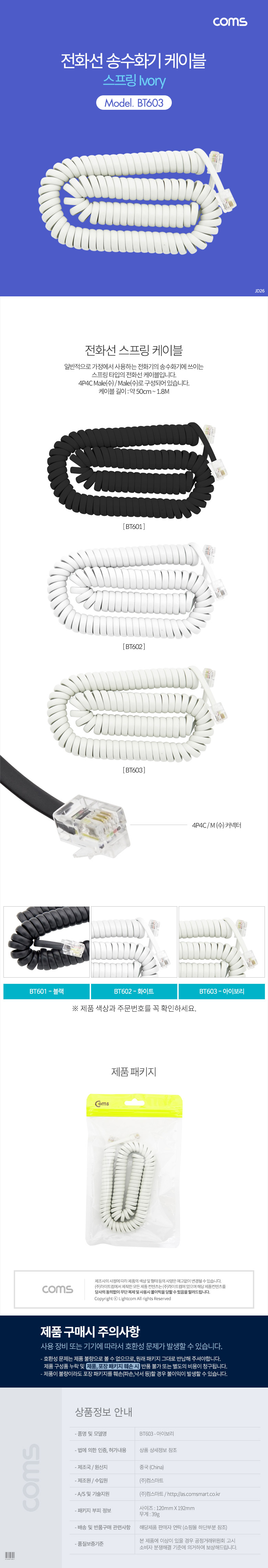 [Coms] 컴스 4P4C 전화선 송수화기 케이블 M/M BT603 (50~180cm/스프링, 아이보리)