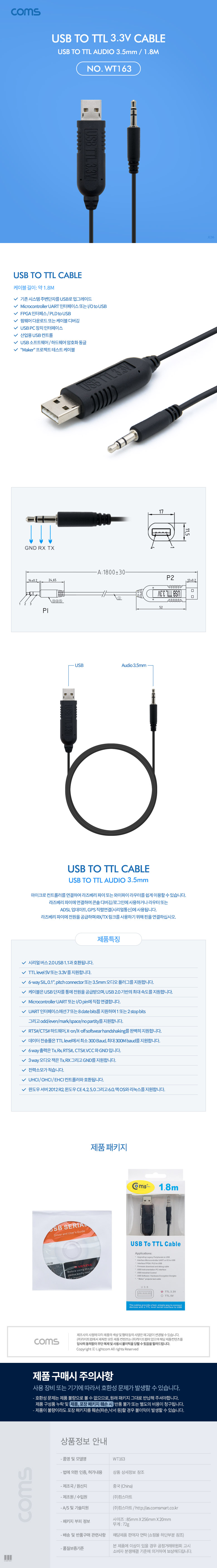 [Coms] 컴스 USB to TTL 3.3V(Audio 3.5mm) 케이블 M/M WT163 (1.8m/블랙)