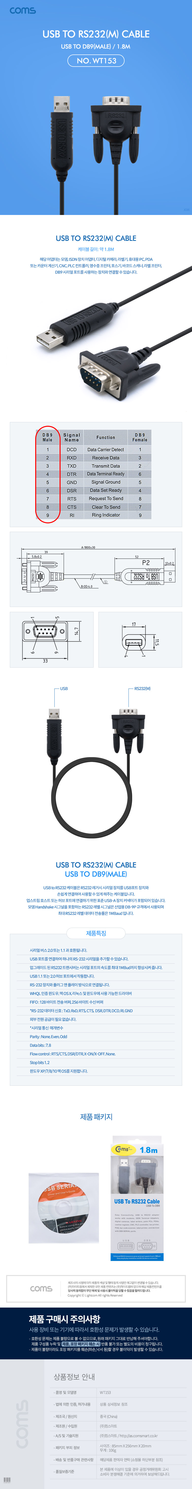 [Coms] 컴스 USB to RS232(DB 9핀) 케이블 M/M WT153 (1.8m/블랙)