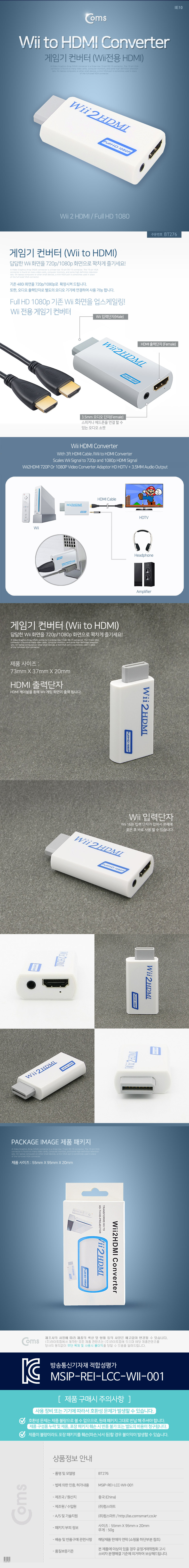 [Coms] 컴스 Wii 16핀 to HDMI 게임기 컨버터 M/F BT276 (오디오 지원, 화이트, 1080P)
