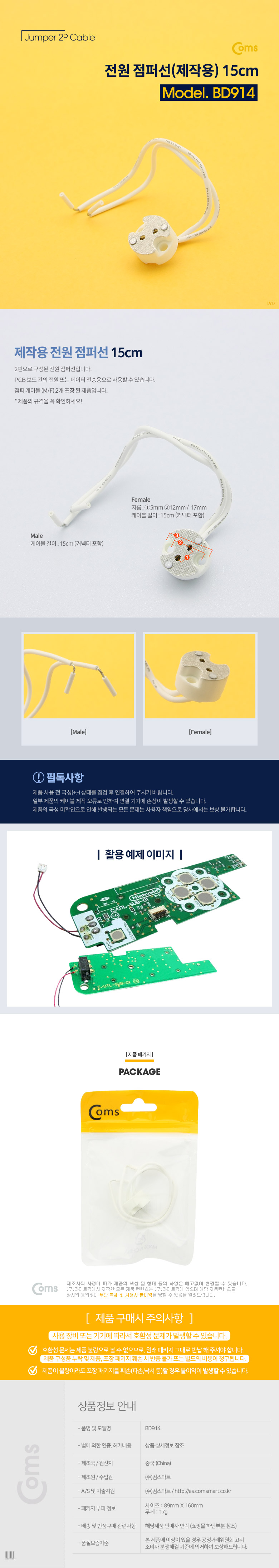 [Coms] 컴스 점퍼 2핀 전원 점퍼선 M/F BD914 (15cm, 화이트, 제작용)
