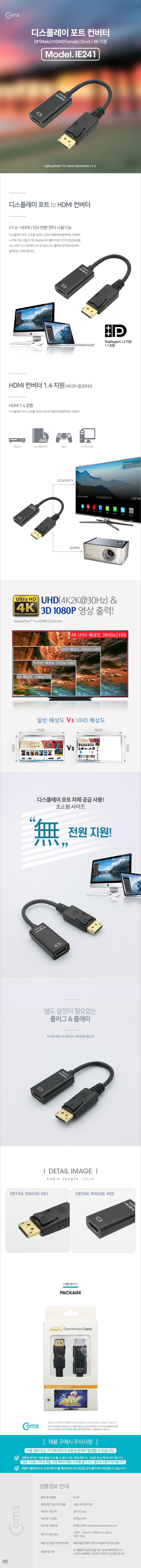 [Coms] 컴스 디스플레이 포트/HDMI 컨버터 M/F IE241 (20cm/숏, 블랙, 무전원, 4Kx2K@30Hz)