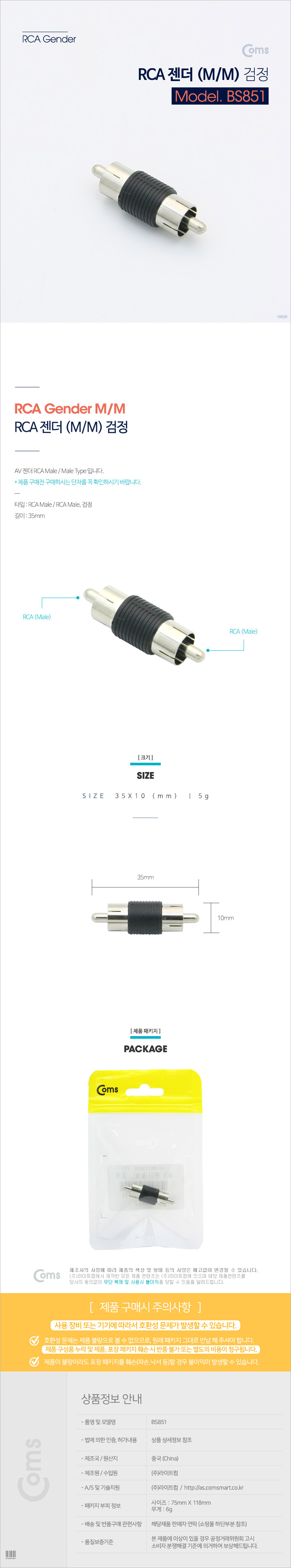 [Coms] 컴스 RCA 젠더 M/M BS851 (35x10mm/블랙)