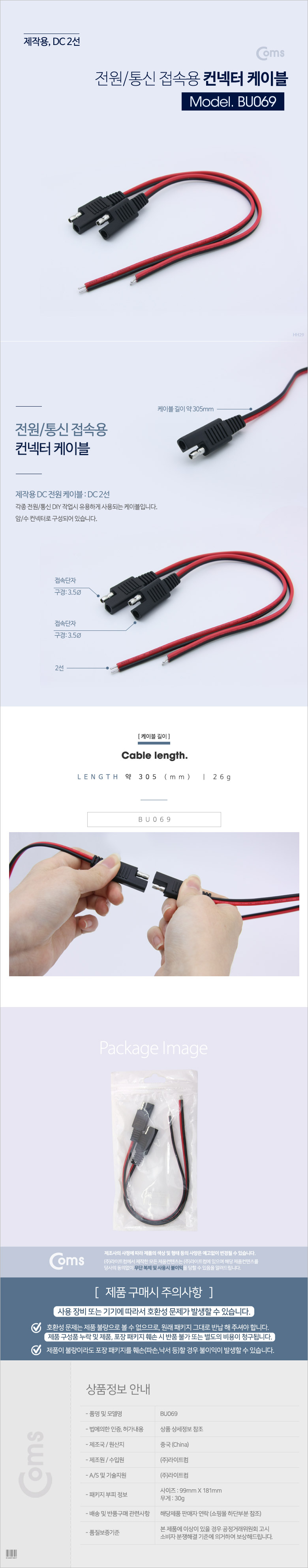 [Coms] 컴스 DC 3.5mm 전원/통신 케이블 M/F BU069 (305mm, 2선연결, 제작용)