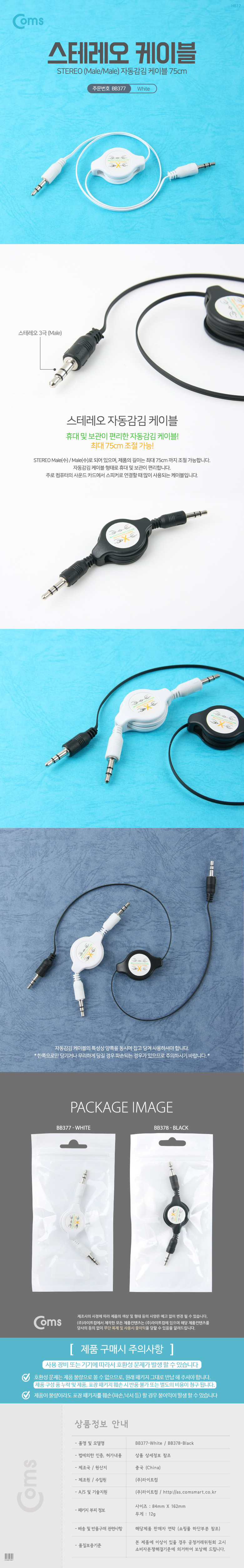 [Coms] 컴스 스테레오 3극 자동감김 케이블 M/M BB377 (75cm, 화이트, 플랫)