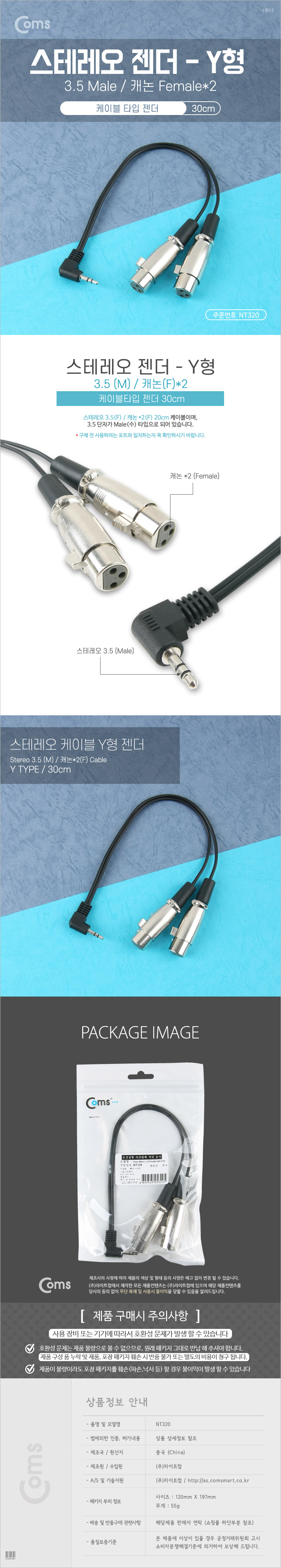 [Coms] 컴스 스테레오 3.5mm/캐논x2 Y형 젠더 M/F NT320 (30cm, 블랙+메탈)