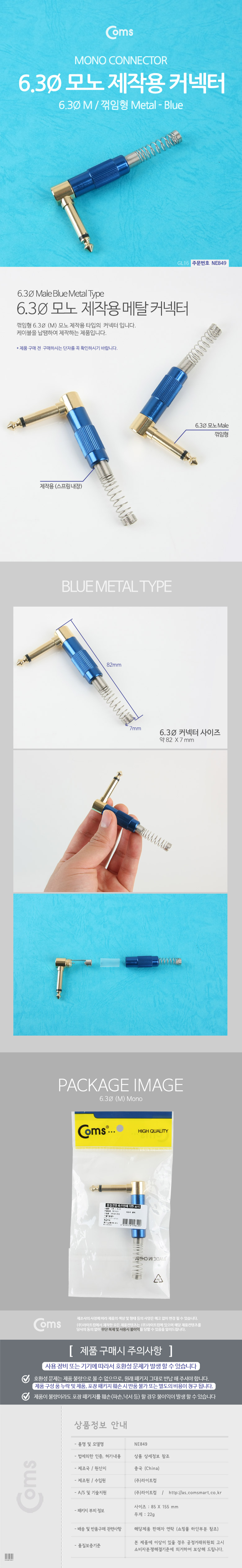 [Coms] 컴스 모노 6.3mm 커넥터 M NE849 (82x7mm/블루, 스프링, 메탈, 모노꺾임, 제작용)