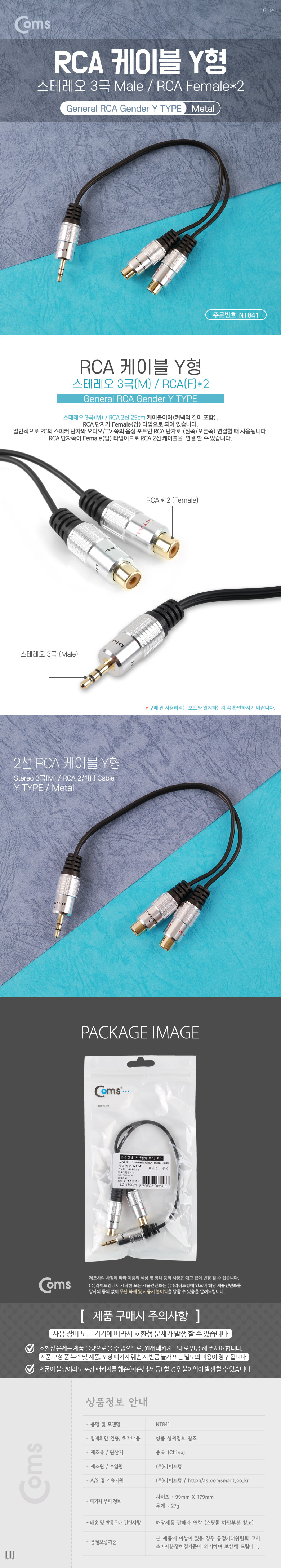 [Coms] 컴스 스테레오 3극/RCAx2 Y형 케이블 젠더 M/F NT841 (25cm, 블랙, 컨넥터 골드)