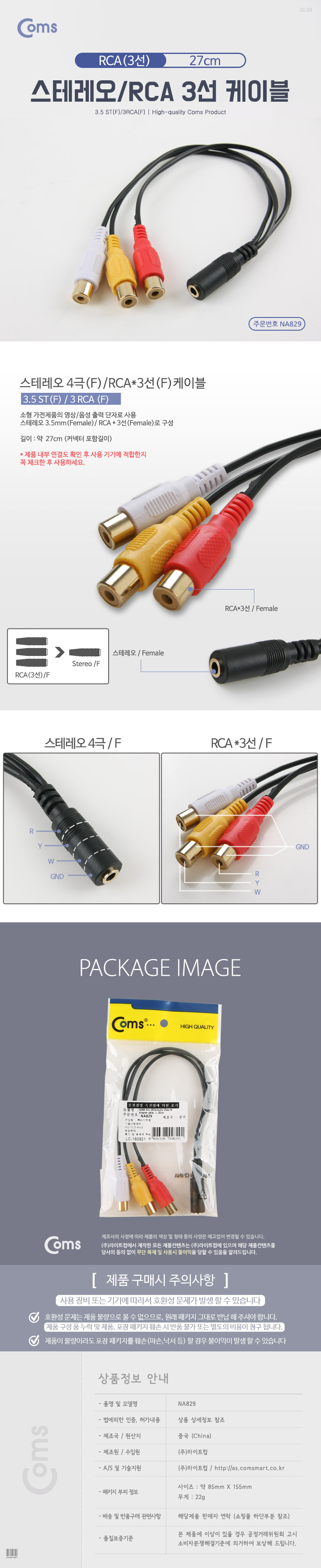 [Coms] 컴스 스테레오 3.5mm 4극/RCAx3 케이블 F/F NA829 (27cm/숏, 블랙)