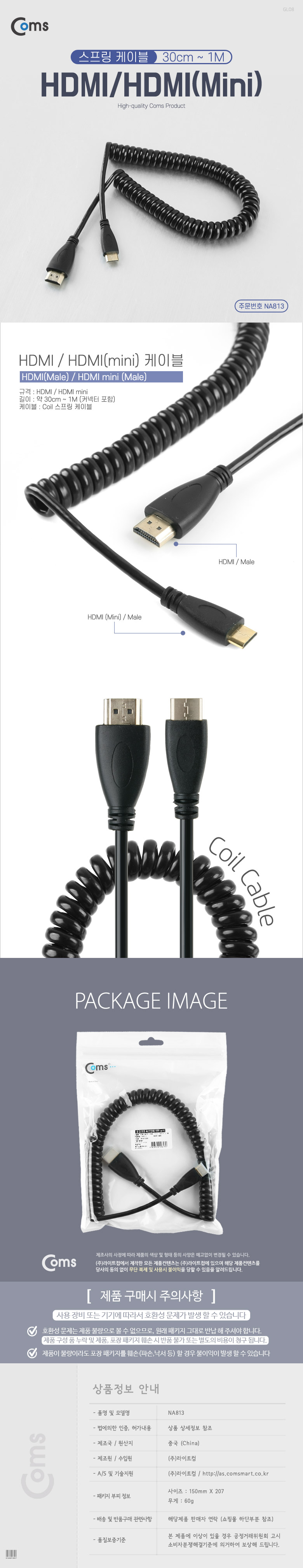 [Coms] 컴스 HDMI/미니 HDMI 케이블 M/M NA813 (0.3~1.0m/블랙, 스프링)