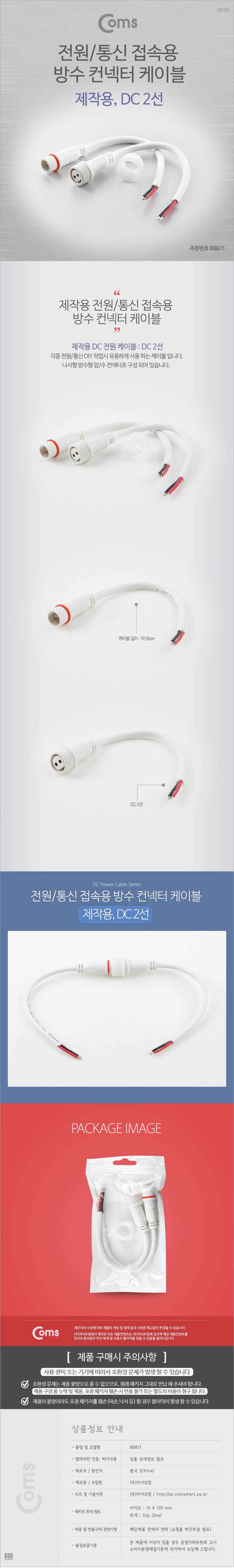 [Coms] 컴스 DC 전원/통신 케이블 M/F BB871 (20cm/화이트, 2선 연결, 제작용, 방수)