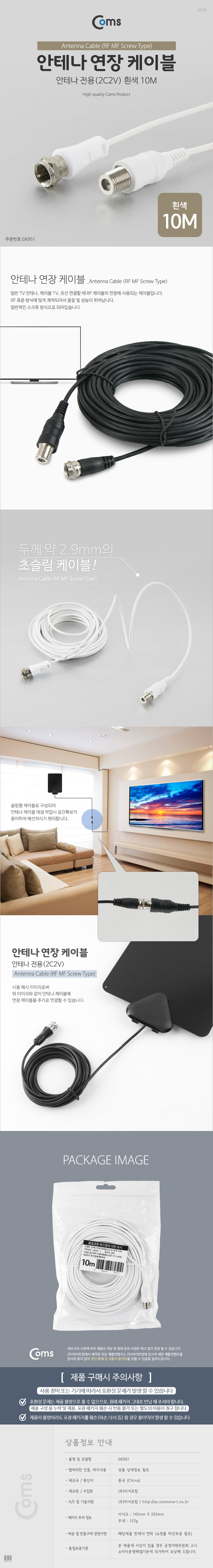 [Coms] 컴스 RF 안테나 연장 케이블 M/F GK951 (10m/화이트, 2C2V, 나사형)