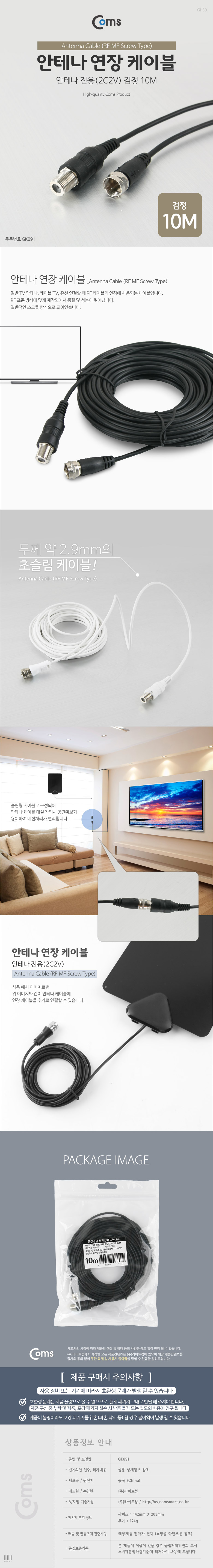 [Coms] 컴스 RF 안테나 연장 케이블 M/F GK891 (10m/블랙, 2C2V, 나사형)