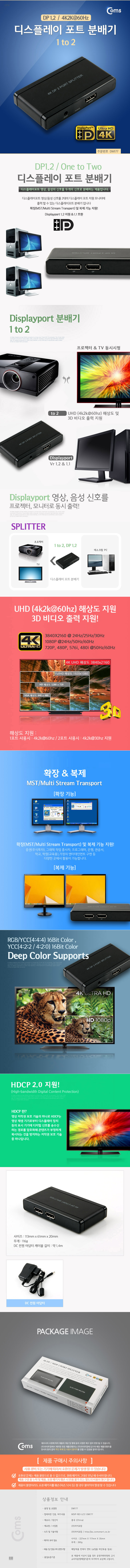 [Coms] 컴스 디스플레이 포트 1.2V 분배기 F/F DM177 (1 to 2, 4K2K@60hz, 확장/복제 기능, 블랙, 113x61x20mm)