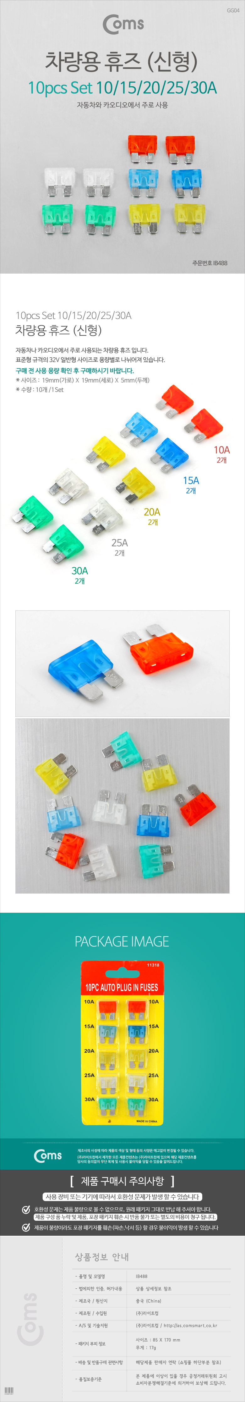 [Coms] 컴스 차량용 휴즈 IB488 (10개/PACK, 10/15/20/25/30A, 32V)