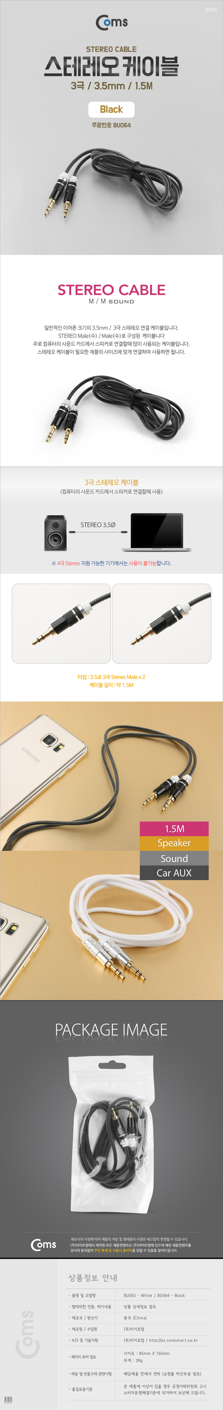 [Coms] 컴스 스테레오 3.5mm 3극 케이블 M/M BU064 (1.5m, 블랙, 컨넥터 골드)