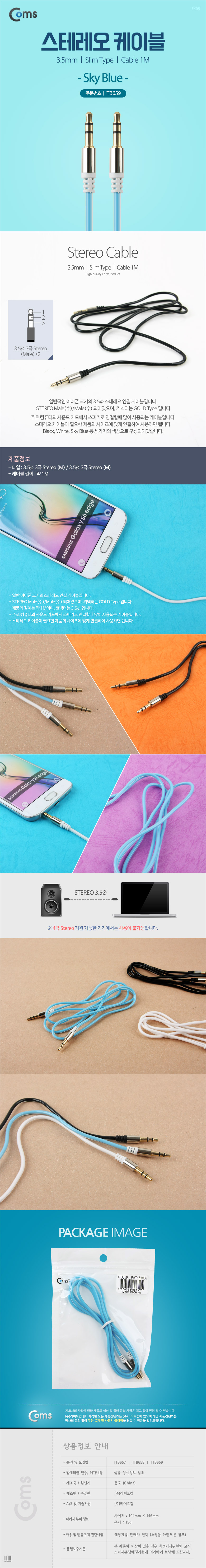 [Coms] 컴스 스테레오 3.5mm 3극 케이블 M/M ITB659 (1m, 스카이블루, 컨넥터 골드, 슬림형)