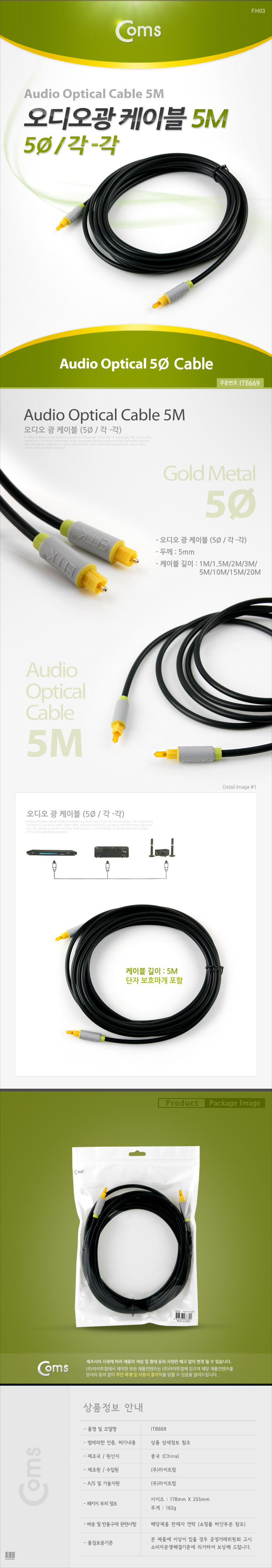 [Coms] 컴스 오디오 광 각/각 케이블 M/M ITB669 (5m, 5Ø, 블랙)