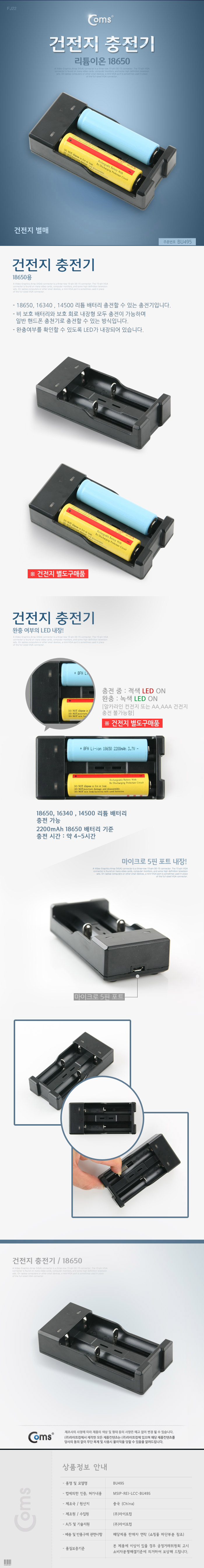 [Coms] 컴스 마이크로 5핀 포트 건전지 충전기 BU495 (사각형, 18650x2개용, 건전지 별매)