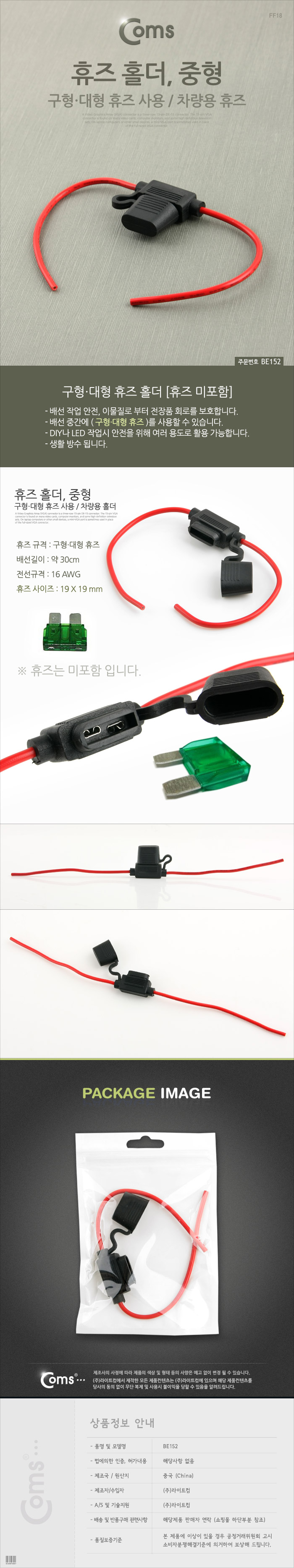 [Coms] 컴스 차량용 휴즈 홀더 BE152 (중형, 30cm/휴즈19x19mm, 30A, 퓨즈 미포함)