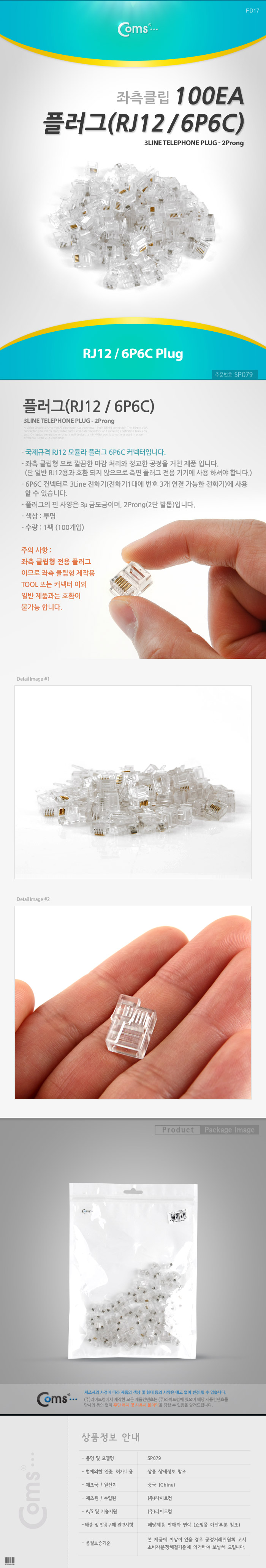 [Coms] 컴스 RJ12 플러그 SP079 (6P6C, 100개/PACK, 좌클립)