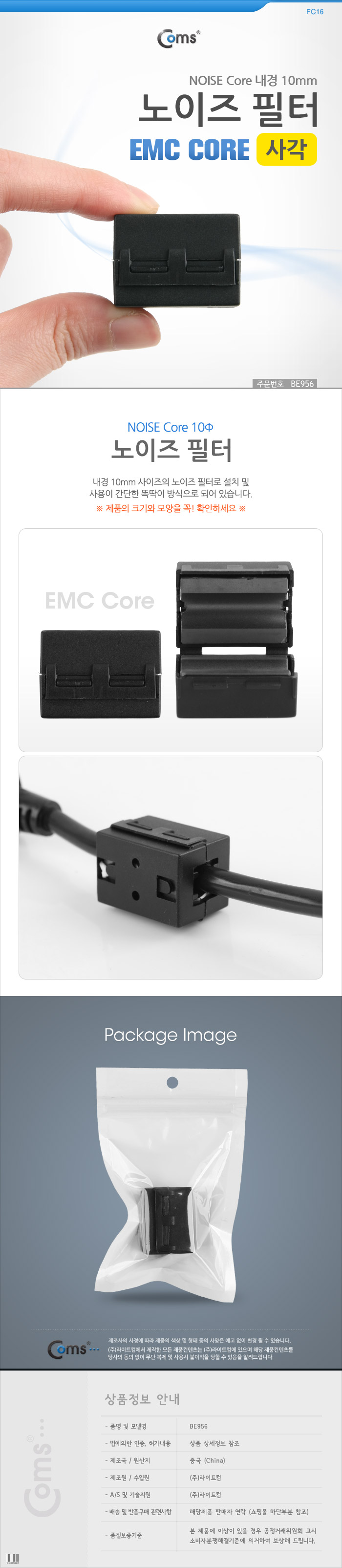 [Coms] 컴스 EMC 노이즈 필터 BE956 (내경 10mm/블랙, 사각, 똑딱이 방식)