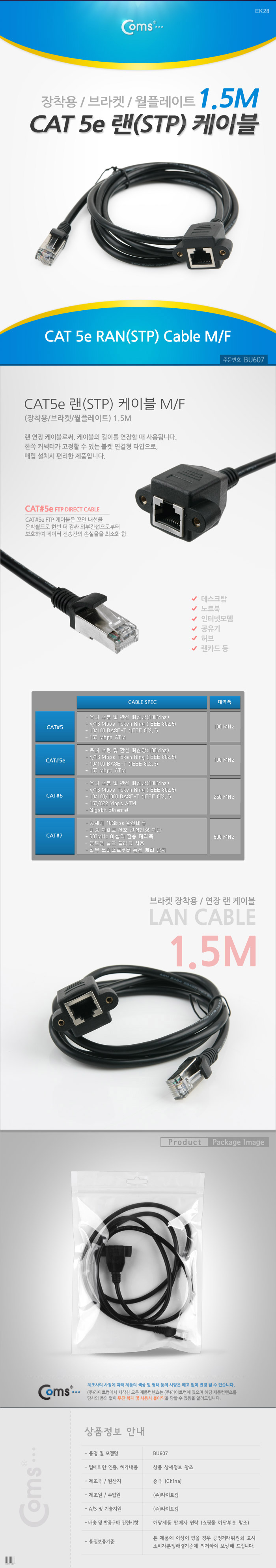 [Coms] 컴스 STP 다이렉트 연장 랜케이블 M/F BU607 CAT#5e (1.5m, 100Mbps, 장착용/브라켓/월플레이트)