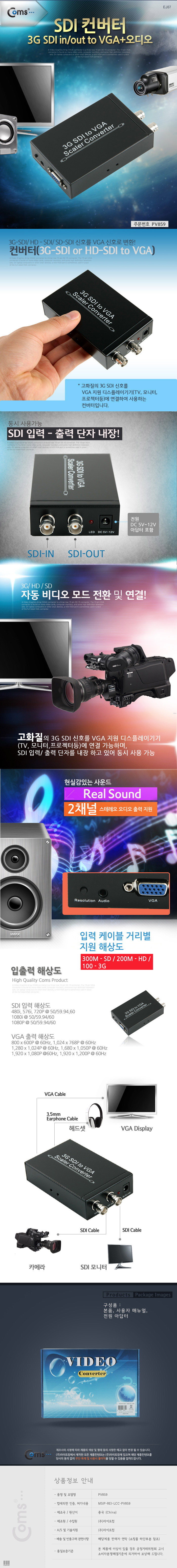 [Coms] 컴스 3G SDI in/out to VGA 15핀 컨버터 PV859 (오디오 지원, 1080P@50/59.94/60, 전원 아답터 포함)