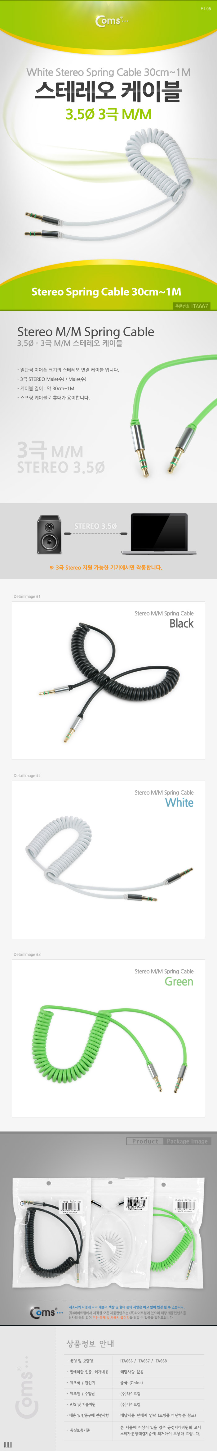 [Coms] 컴스 스테레오 3.5mm 3극 케이블 M/M ITA667 (0.3~1.0m/화이트, 스프링)