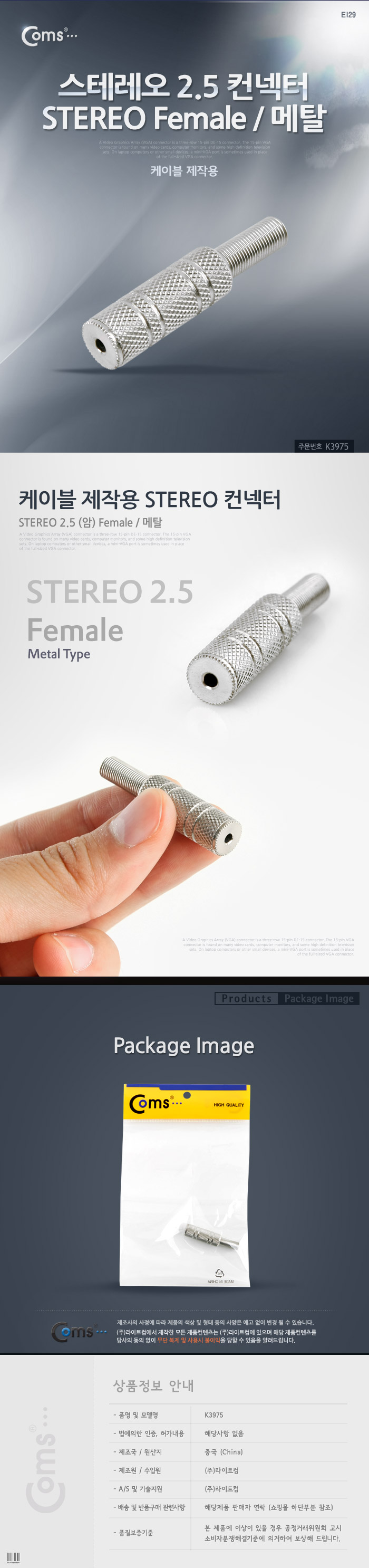 [Coms] 컴스 스테레오 2.5mm 컨넥터 M K3975 (메탈)