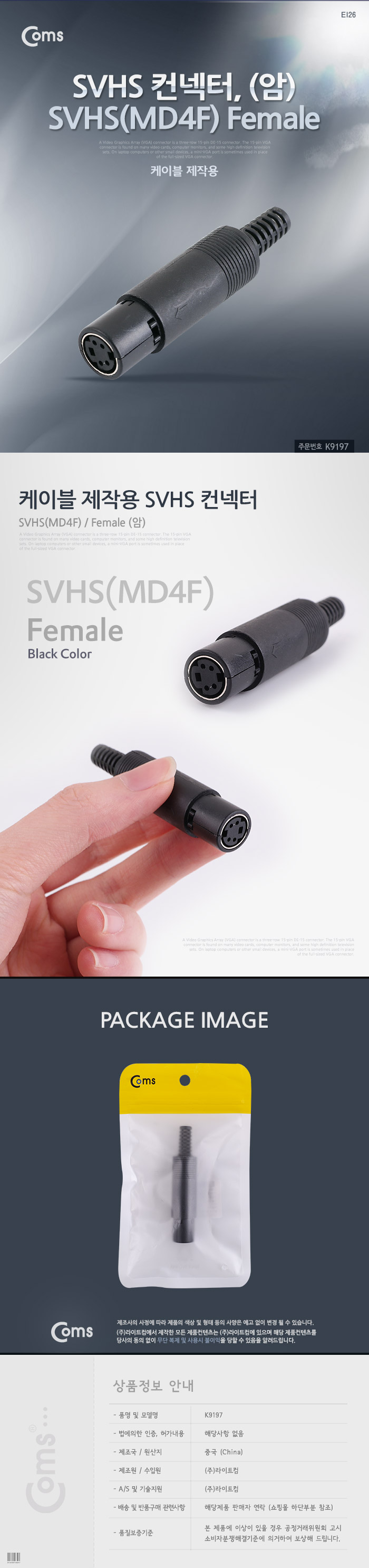 [Coms] 컴스 SVHS 컨넥터 F K9197 (MD4F, 블랙)