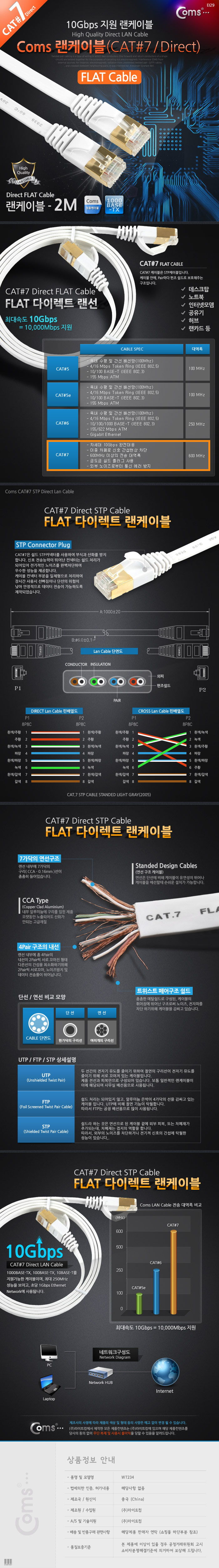 [Coms] 컴스 STP 기가 다이렉트 랜케이블 CAT#7 WT234 (2m/화이트, 10Gbps, 컨넥터 골드)