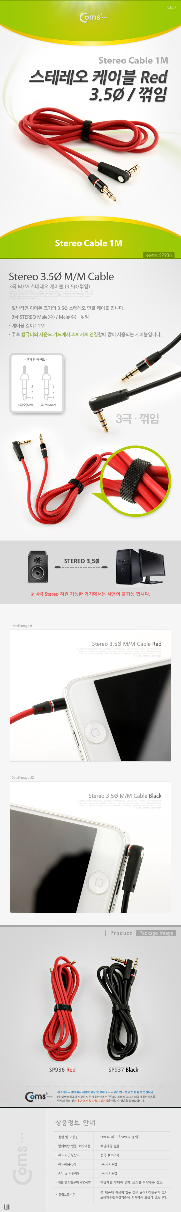 [Coms] 컴스 스테레오 3.5mm 3극 케이블 M/M SP936 (1m/레드, 한쪽꺾임)